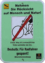 das Reiten auf gekennzeichneten Wanderwegen unter 3 Meter Breite und auf